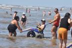 Um grupo de 16 idosos do Ancionato Lar de Nazaré, do balneário Mariluz, participou nesta quinta-feira (29) de mais uma atividade de banho assistido com as cadeiras anfíbias do programa “Rede Praia Acessível”. A ação é organizada pela Secretaria Municipal da Mulher e Direitos Humanos (SEMDHI) em parceria com o Governo do Estado, por meio da Fundação da Articulação e Desenvolvimento de Políticas Públicas para PcD e PcAH do Rio Grande do Sul (FADERS).